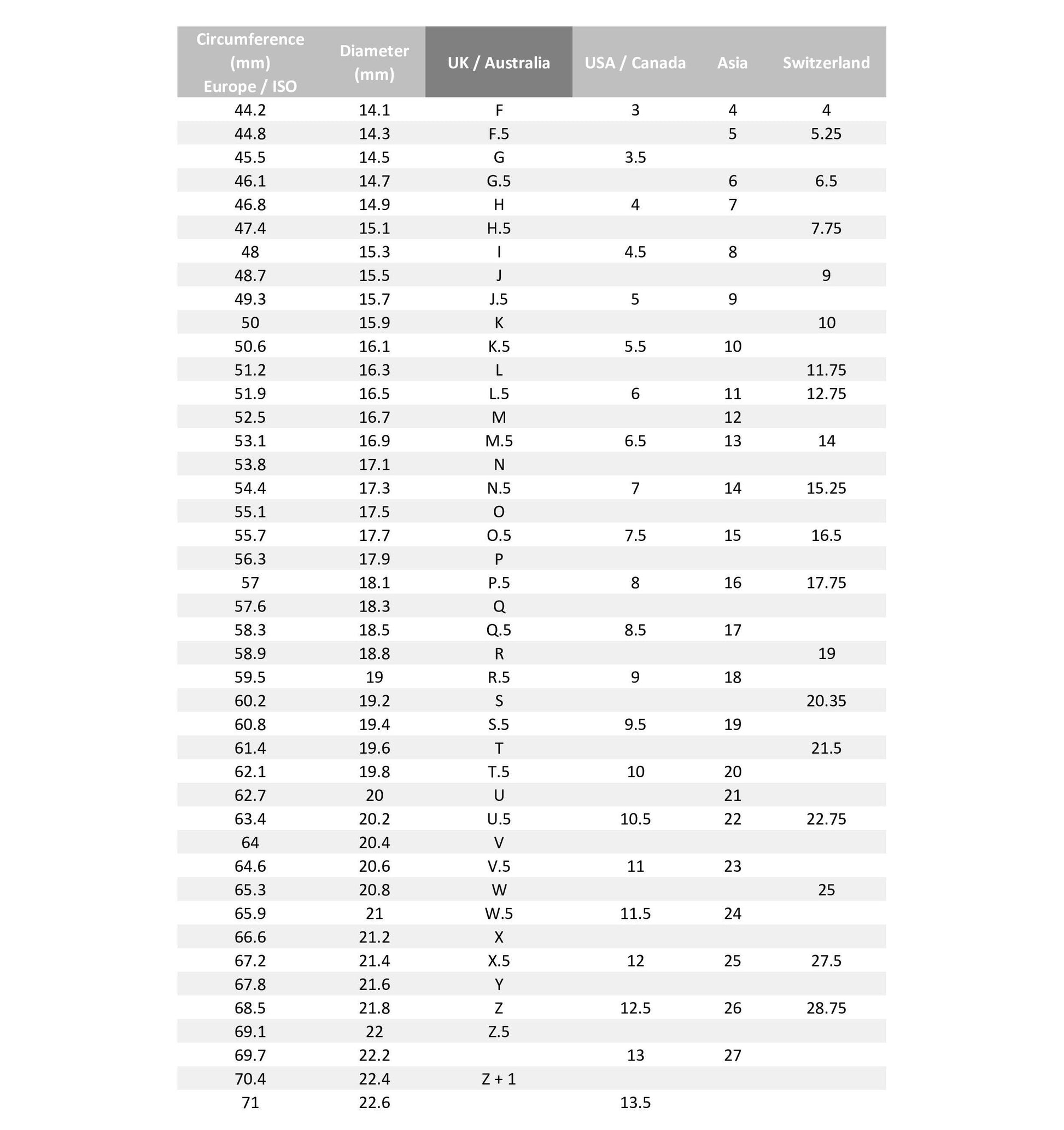 If you don't know your ring size, & can't make it to a local jeweller to be measured with a metal ring gauge, you can measure your ring size at home using this plastic gauge. Wrap it around your finger, like a belt, to find a comfortable fit & ensure you can take it off over your knuckle.
